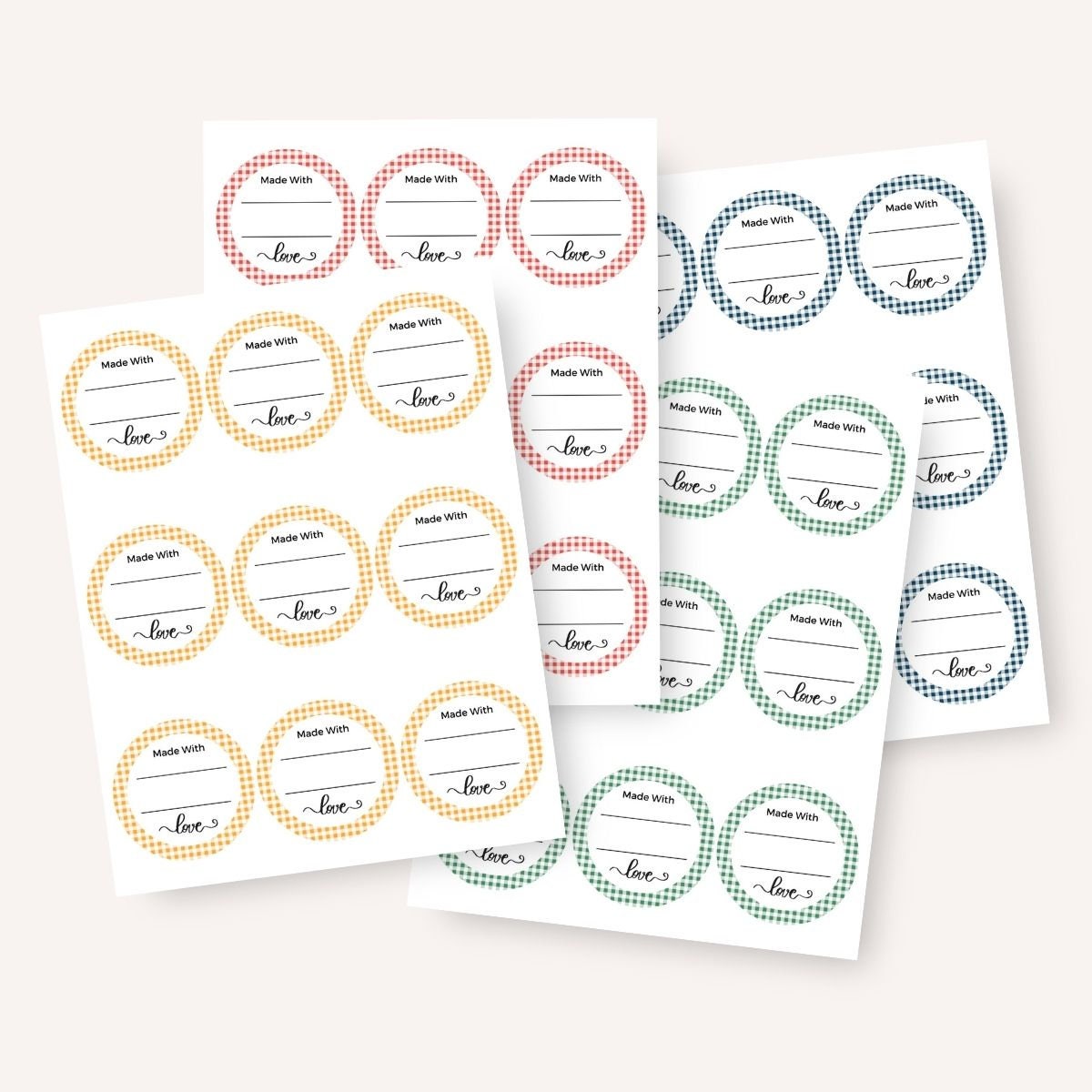 This set is gingham with four colors: red, blue, green, and yellow.